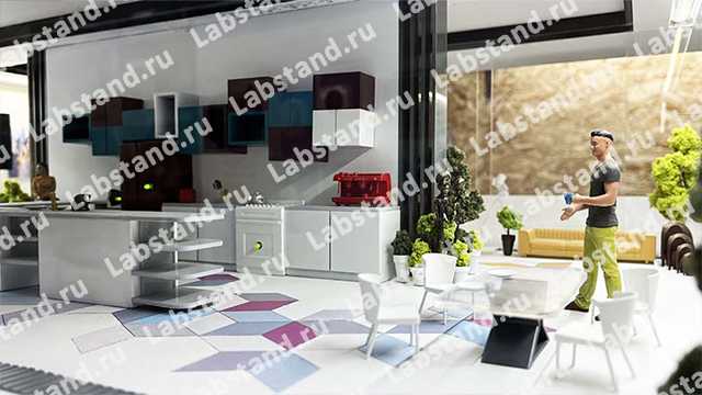 Лабораторный комплекс «Интернет вещей в «умном» доме» представляет из себя макет дома с датчиками, устройствами и контроллером. Предназначен для обучения принципам работы устройств и систем IoT (интернет вещей) на примере реализации системы «умного дома».