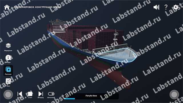 • изучить подробную трехмерную модель судна, его основных элементов и оборудования.
