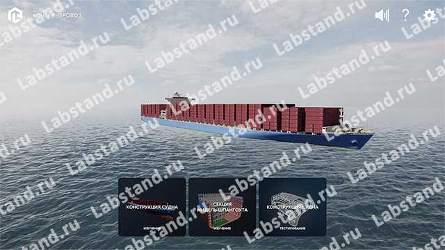 Многофункциональный учебный VR-комплекс «Виртуальное судно-контейнеровоз» предназначен для использования в качестве учебно-методического пособия для подготовки курсантов образовательных учреждений водного транспорта по разделу «Устройство судна» дисциплины «Теория и устройство судна». Данный виртуальный учебный комплекс предназначен для подробного изучения конструкции и общего устройства современных контейнеровозов с помощью виртуальной реальности. Данное ПО является наглядным учебным пособием для студентов технических и инженерных специальностей, связанных с производством и проектированием судов.