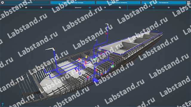 Данная демонстрация с помощью трехмерной графики и анимации позволяет в логичной последовательности изучить элементы трубопроводов, виды запорной и регулирующей арматурой, основные принципы работы арматуры и приборов контроля за работой систем. Эти первичные знания реализуются в виде принципиальных схем судовых систем отвечающих требованиям к ним. Комплекс включает примеры конкретных систем из групп трюмных, балластных, противопожарных систем и специальных систем танкеров.